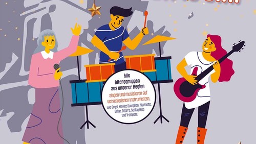Alle Altersgruppen unserer Region singen und musizieren auf verschiedenen Instrumenten. Orgel, Klavier, Saxophon, Klarinette,Geige, Gitarre, Schlagzeug und Trompete.